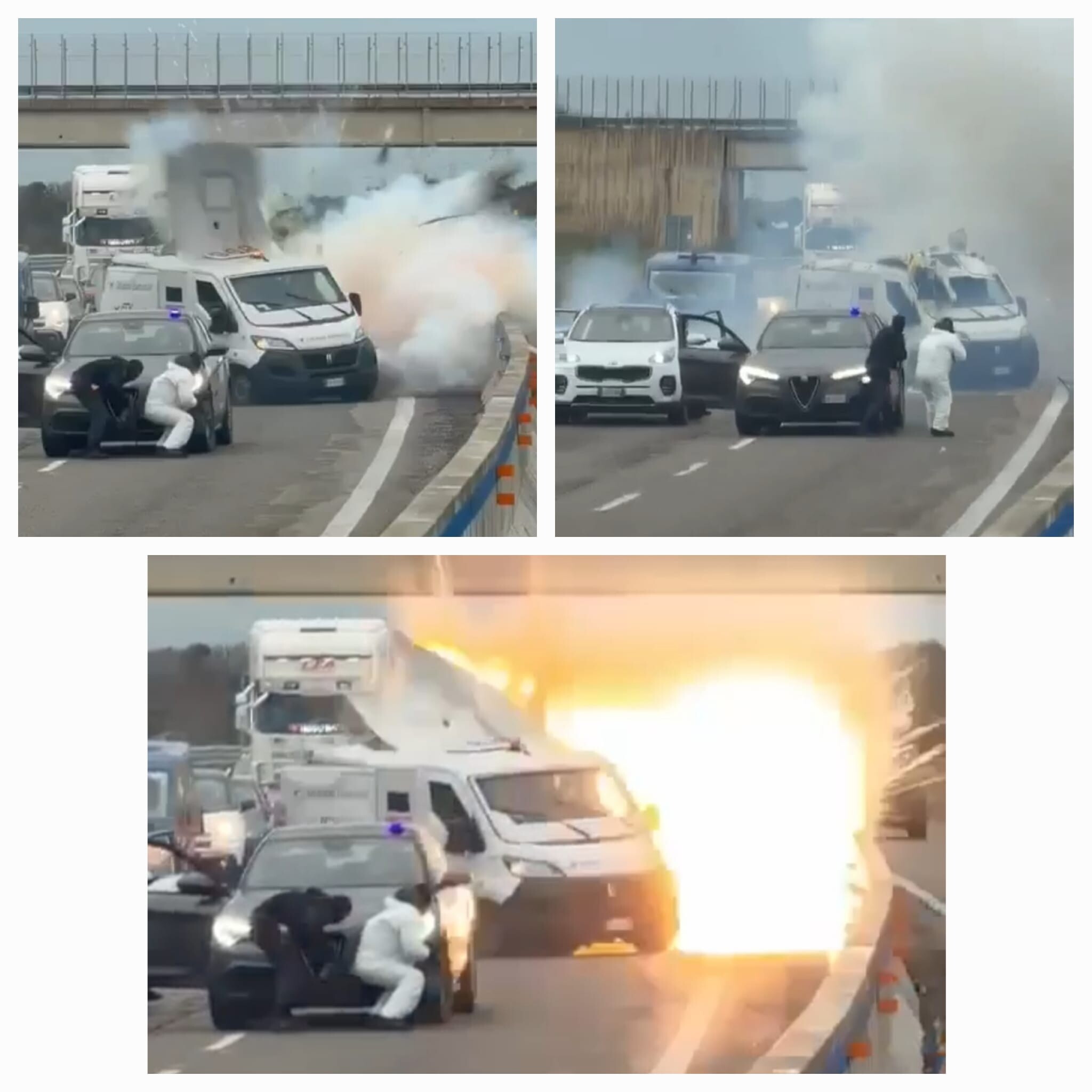 Il commando armato era composto da almeno quattro persone, giunte sulla Statale a bordo di un’auto di colore blu, un’Alfa Romeo con lampeggiante esterno. I banditi hanno finto di essere agenti di scorta per confondere le acque e trarre in inganno i vigilantes. Non indossavano divise ed avevano i volti coperti. Hanno fatto scendere le guardie giurate dal mezzo e poi hanno provato a farlo saltare in aria.