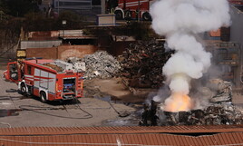 Il centro sportivo davanti alla pompa di benzina, ci racconta un vigile del fuoco, “è pieno di pezzi di cisterna, per fortuna era ancora chiuso. Pezzi più piccoli di questo”, dice indicando una placca lunga 4-5 metri per terra sotto un cartellone pubblicitario. Un’ora dopo l’esplosione ancora il fumo si alzava in rigonfiamenti densi e neri dalla pompa di benzina. In una piazza vicina un uomo in macchina chiedeva alla polizia: “Quando riaprite? Io abito lì”. La poliziotta allargava le braccia.