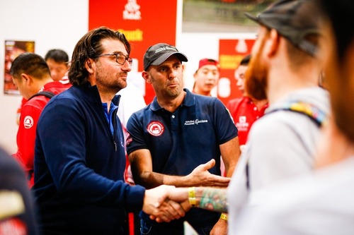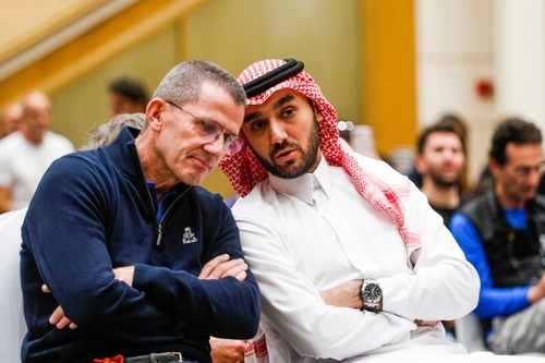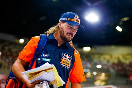 Per scaldare l’ambiente. Il fuoco dell’ultimo minuto. È arrivato anche Cyril Despres. Si sapeva che quest’anno “intendeva divertirsi”, e che si era avvicinato al progetto-giovani di Red Bull Desert Wings, che ruota attorno ai nuovi OT3 di Overdrive, in qualità di coach. Invece all’ultimo minuto utile, saltata la partecipazione di Seth Quintero mentre stavano già ritirando la passerella, Despres è salito su uno dei piccoli buggy “specializzati” a ha aperto la portiera (si fa per dire) destra del suo OT3 a Mike Horn, l’esploratore sudafricano icona dell’avventura.