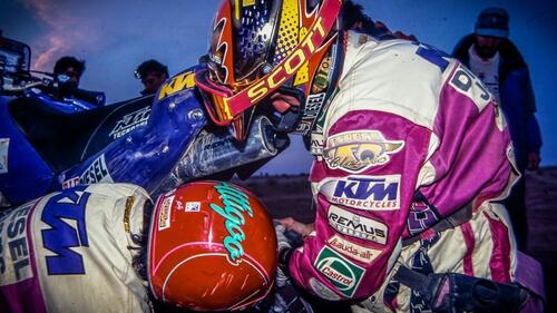 A quel tempo se un Pilota si fermava nel Ténéré poteva essere certo che il primo che fosse passato di lì si sarebbe fermato e che gli avrebbe offerto il massimo dell’assistenza possibile, e questo accadeva tra privati e tra ufficiali, tra privati e ufficiali. Democrazia assoluta, primordiale della Dakar. Non tutti sono uguali, naturalmente. C’è stato anche qualcuno, pochissimi in verità, che passando accanto a un concorrente in panne si è girato dall’altra parte, ha fatto finta di non aver visto e ha tirato dritto per non perdere tempo. I Dakariani sanno bene che quei pochi erano e sono condannati all’inferno.