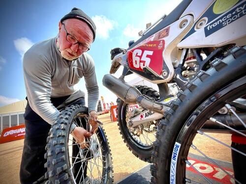 Per questo doveva essere preparato a fare da solo, a sbrigarsela con i propri mezzi, ad arrangiarsi se ce ne fosse stato bisogno, pena arrivare a correre dei seri rischi. E comunque il principio era che sia il Pilota che la sua assistenza, tutti correvano il rischio di non farcela. Molti sono partiti con fior di assistenze, moltissimi si sono ritrovati soli per aver perso supporto, pezzi di ricambio, rifornimenti. Va da sé che la prima cosa cui andava incontro l’”orfano” era la necessità di fare, da un certo momento in poi, tutto da solo. Sistemare la moto, cambiare le gomme, e reperirle, trovare quel ricambio tra i partecipanti, comprare un pezzo vitale con la moneta della promessaintima della solidarietà, se un giorno fosse successo ad un compagno di avventura, ad un solitario perduto nel Deserto. Se questo era vero per tutti, per i Motociclisti è stata ben presto religione, l’essenza di un insegnamento, di un cambiamento interiore di cui la Dakar era stata il guru.