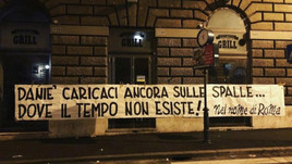 ROMA – Terzo giorno di contestazione per l’addio di DeRossi. La Curva Sud questo pomeriggio è pronta a manifestare davanti alla nuova sede della Roma all’Eur, ma intanto nella notte sono stati esposti altri striscioni contro la dirigenza e per il capitano giallorosso. «Danié caricaci ancora sulle spalle, dove il tempo non esiste», il messaggio affisso sotto casa del centrocampista giallorosso, che il prossimo 26 maggio giocherà la sua ultima partita con la maglia della Roma.