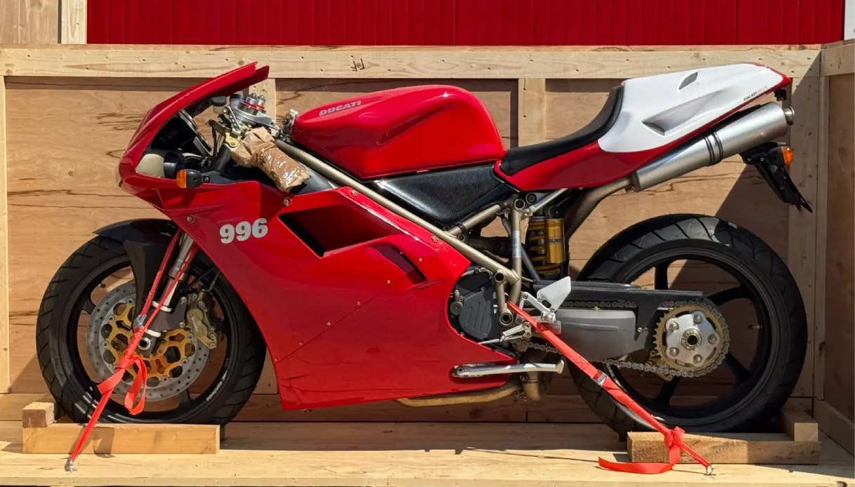 La protagonista di questa storia non è un’esagerazione futuristica né un prototipo da salone. È una Ducati 996 SPS del 1999, uno degli ultimi tributi al glorioso motore Desmoquattro prima che l’era Testastretta prendesse il sopravvento. Una vera superbike di razza, costruita per vincere, ma che invece è rimasta ferma, come un animale da corsa mai liberato dal recinto.