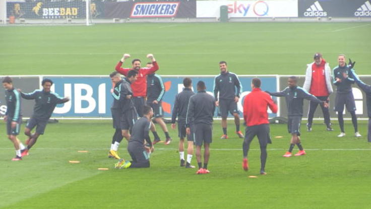 TORINO – È difficile vedere Cristiano Ronaldo perdere una sfida e l’allenamento di rifinitura della Juventus per preparare la sfida al Lione è stata una delle poche occasioni. Durante il torello di squadra il portoghese era al centro con Douglas Costa e Pjanic a rincorrere la palla che i compagni si scambiavano con passaggi di prima portando il conto di questi, alcuni in italiano e altri in spagnolo. Al passaggio numero 19 Cuadrado si è inventato il cucchiaio, realizzato ai danni del numero 7 bianconero che era intervenuto in tackle sul colombiano per toccare il pallone. La giocata particolare dell’esterno ha mandato totalmente in estasi i compagni, neanche loro non abituati a vedere Ronaldo perdere. A bordocampo Sarri ha assistito all’episodioridendo.