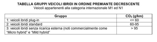Conta anche il modo in cui si definiscono le “classi” delle auto, per trattarle in un modo o nell’altro. “Forse qualcosa adesso sta cambiando, per fortuna ci sono delle nuove ripartizioni ministeriali in tre gruppi (vedi tabella) che diversificano le varie ibride, su livelli emissivi. Quelle mild o classiche aiutano, di certe percentuali. Ben diverso però rispetto alle pure elettrica o a un Plug-in, quelle con la spina insomma”.