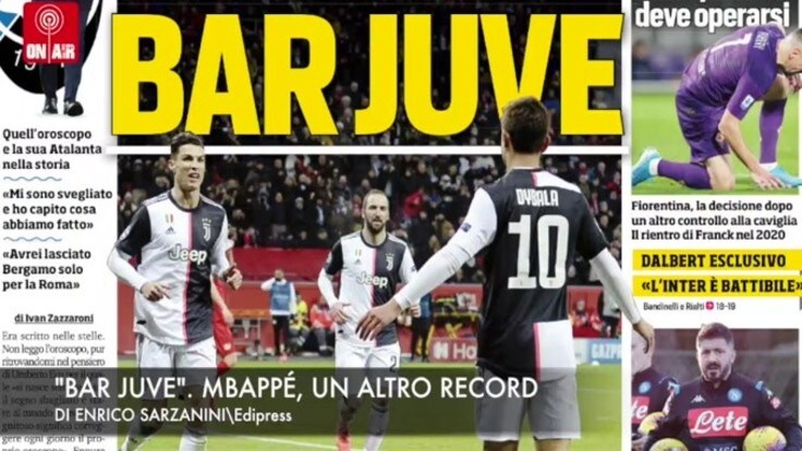 ROMA – “Bar Juve”. Questo il titolo che campeggia stamani sulla prima pagina del “Corriere dello Sport” e dedicato alla nuova sfida di Maurizio Sarri pronto a schierare il tridente pesante che solo qualche mese fa lo stesso allenatore bianconero aveva tacciato come “discorsi da bar” ma oggi tornato d’attualità: Dybala infatti è diventato insostituibile e l’idea di schierarlo con Higuain e Ronaldo diventa sempre più concreta.