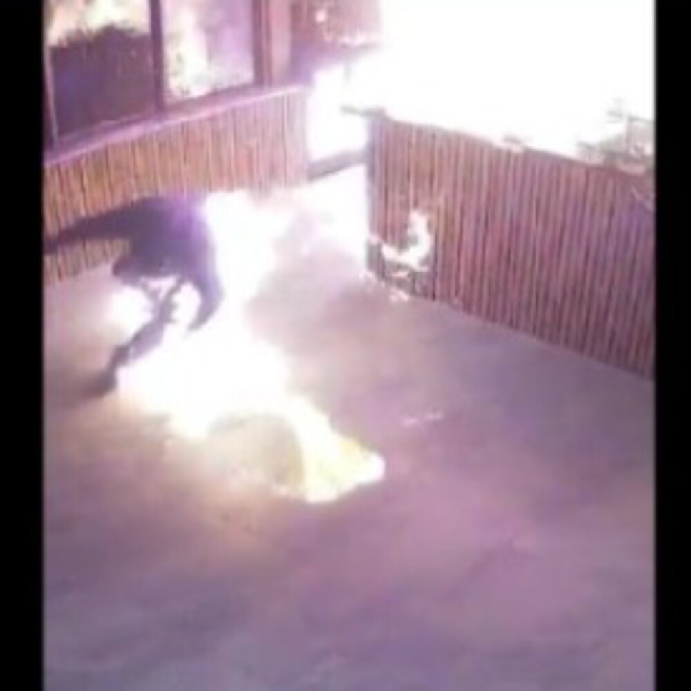 L’uomo, vestito con pantaloni neri e una felpa nera con cappuccio, ha svuotato il contenuto della tanica nella zona del bar prima di appiccare l’incendio dando accidentalmente fuoco anche ai suoi vestiti. La polizia ha diffuso le immagini delle telecamere a circuito chiuso con un appello alla popolazione per rintracciare quell’uomo.