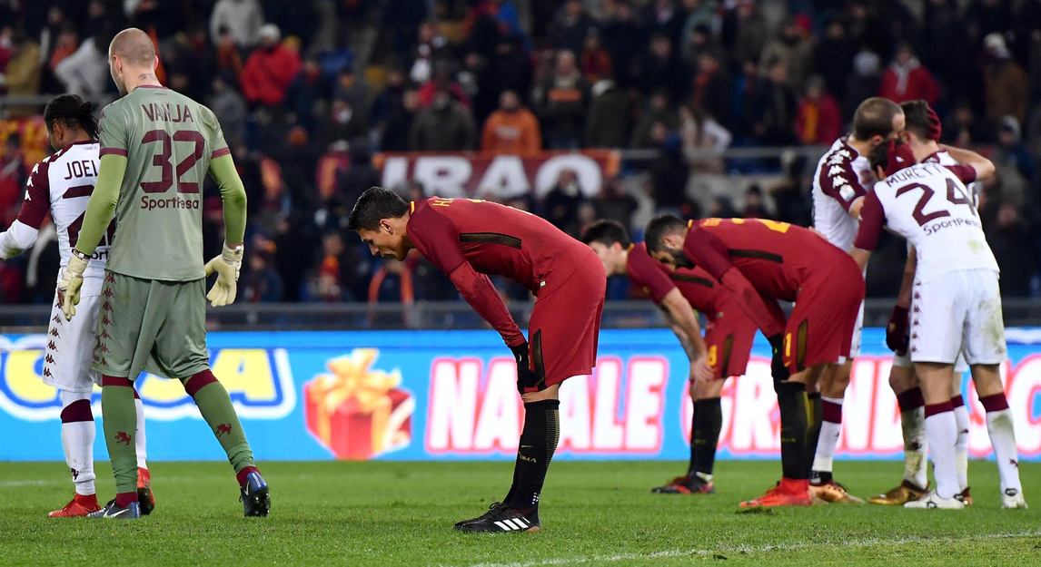 La Roma ha perso il primo tram di una stagione peraltro brillante. E’ uscita da una competizione vinta 9 volte (solo la Juve ha fatto meglio) ma che le sfugge da 10 anni. Ci ha messo molto del suo per la verità. Sia per i tanti errori compiuti sul campo, sia per la scelta di un turn over rilevante. La squadra giallorossa, infatti, con il Toro oltre a ribadire la difficoltà a trasformare in gol quanto di buono crea, ha anche subito due reti, evento rarissimo. La difesa completamente cambiata non è stata all’altezza degli elevati standard abituali. È chiaro che la Roma ha considerato la grande sfida di sabato con la Juve più importante, dopo di che ha orientato le scelte in base a questa priorità. Il rigore sbagliato da Dzeko e le tantissime occasioni buttate hanno completato il lavoro, onestissimo, del Torino.