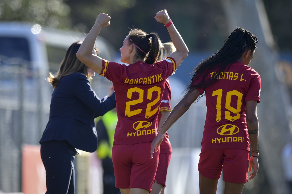 ROMA – Tutto facile per la Roma. Al Tre Fontane contro l’Hellas Verona le giallorosse vincono 6-0 e mettono a segno un’altra goleada dopo quella in Coppa Italia ai danni del San Marino. In casa delle capitoline la sfida è a senso unico già dai primi minuti: al 15′ Manuela Giugliano prova a sbloccare il risultato con un gran tiro che impatta sulla traversa, ma il vantaggio arriva un paio di minuti più tardi con il capitano Elisa Bartoli, che trova la deviazione vincente sugli sviluppi di un calcio d’angolo. Al 19′ Bonfantini firma il raddoppio con un destro al volo imprendibile per Forcinella, al 25′ Hegerberg su assist di Giugliano mette a referto il tris. Le padrone di casa però sono inarrestabili e trovano il poker ancora con Bonfantini (discesa della 22 giallorossa che infila il portiere avversario a distanza ravvicinata), e il 5-0 su calcio di rigore con Andressa. A inizio ripresa è di nuovo Bonfantini a prendersi la scena: al 46′ è tripletta per l’azzurra e 6-0 per la squadra di Betty Bavagnoli.