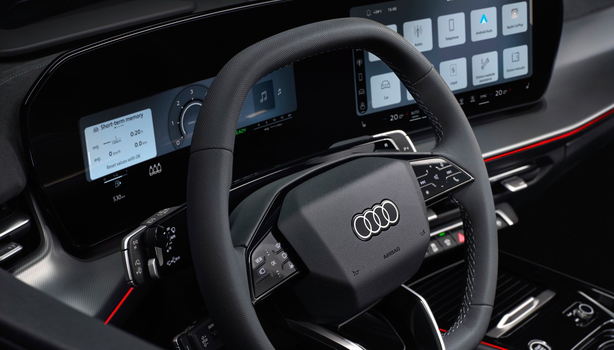 E poi c’è l’intelligenza dei dettagli: comandi al volante ridisegnati, con il cambio ora integrato sul piantone dello sterzo. Uno spazio nel tunnel centrale che Audi ha subito trasformato in funzionalità: doppio portabicchieri, ricarica wireless da 15W con raffreddamento, e prese USB-C anche per i passeggeri posteriori. Perché il comfort non deve finire con il sedile del conducente.