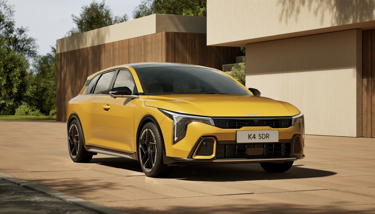 Tra il tetto sospeso, le maniglie posteriori nascoste nel montante e la firma luminosa Star Map (ripresa dall’ammiraglia elettrica EV9), il design fa tutto fuorché passare inosservato. A colpire subito è la verniciatura Sparkling Yellow, esclusiva per il lancio, che marchia la K4 come presenza inevitabile sulla strada, così da dare alla hatchback una presenza scenica degna di una concept car.