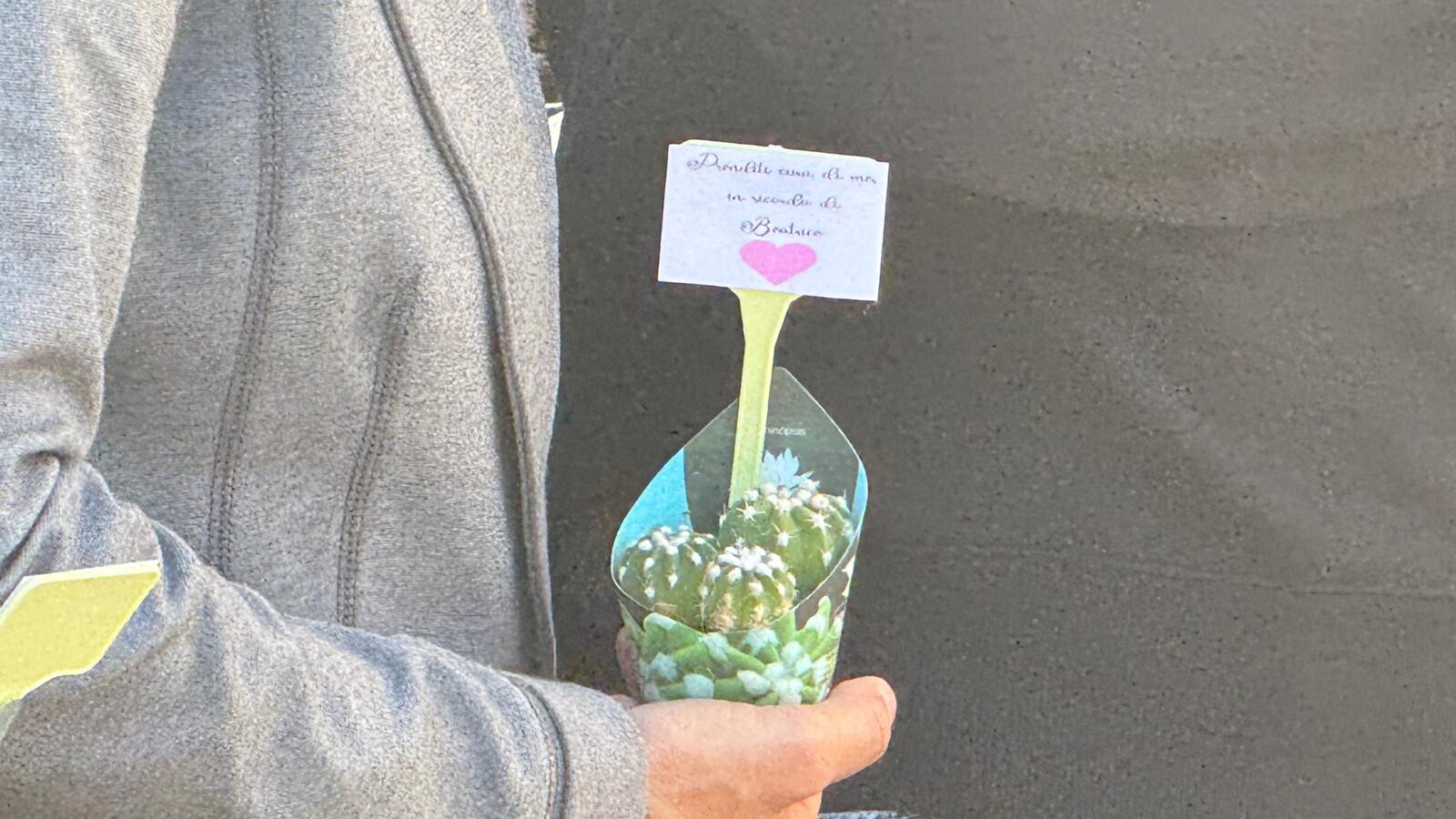 “Prenditi cura di me in ricordo di Beatrice”. Fuori dalla Basilica dei Santi Pietro e Paolo all’Eur al termine dei funerali di Beatrice Bellucci. la ragazza morta a soli 20 anni in un incidente stradale sulla Cristoforo Colombo, i presenti hanno regalato una piantina con il biglietto con il messaggio in memoria di Beatrice.