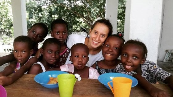 Silvia Romano in Africa come volontaria della onlus Africa Milele, nel 2018 (fotogramma)
